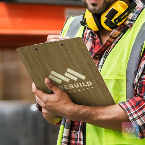 Classic A4 clipboard made from natural bamboo with an iron clamp and a wall hook for easy storage.