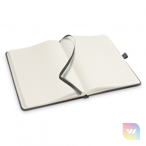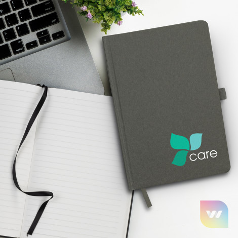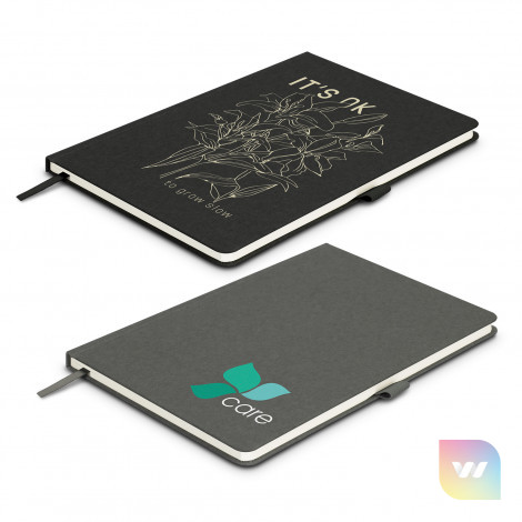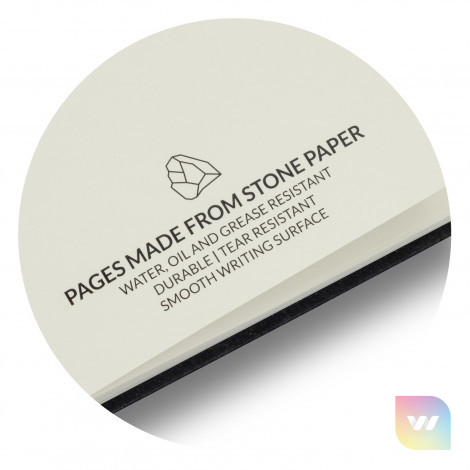 The Petros notebook is a one-of-a-kind writing companion with a water-resistant hard cover. It has 64 leaves (128 pages) of 108gsm lined stone paper. This innovative paper stock is created by blending powdered limestone with bio-polythene resin, resulting in exceptionally durable, tear-resistant pages that are water, oil and grease-resistant and provide a luxuriously smooth writing surface. The medium-size (approximately A5) notebook also features a pen loop and a bookmark ribbon. An optional paper belly band is available on request and can be branded in full colour.