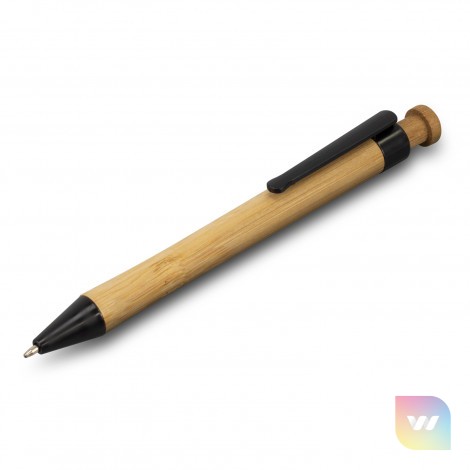 Retractable ballpoint pen with a natural bamboo barrel and black trim made from PLA plastic derived from corn starch. The pen has a black large volume refill with 1200 metres of German manufactured Dokumental ink and it can be presented in an optional gift box.