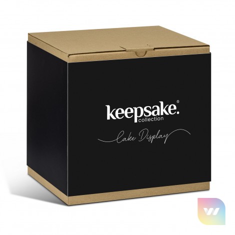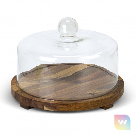 Stunning cake display with a 27cm glass dome and a 29cm natural acacia wood base. The display is carefully presented in natural gift box with a Keepsake branded sleeve.