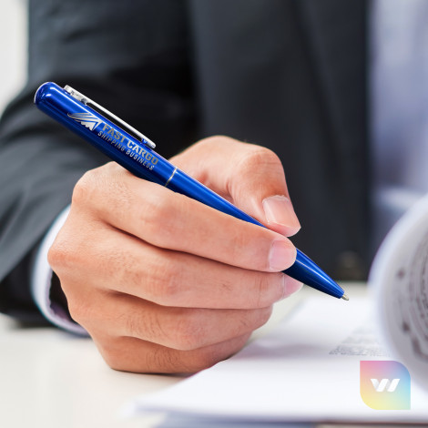 Premium twist-action aluminium ballpoint pen with a gloss anodised barrel and shiny chrome trim. The pen has a blue refill with 1000m of German manufactured Dokumental ink and can be presented in an optional pen sleeve.
