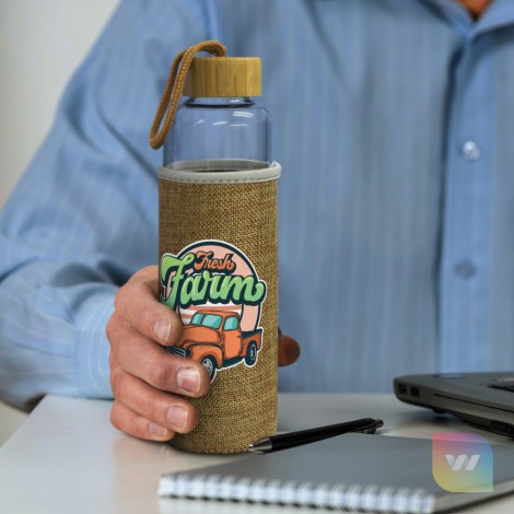 Stylish 600ml borosilicate glass bottle with a fashionable and insulating poly jute sleeve. Borosilicate is lightweight, exceptionally strong and is shatter-resistant. Eden is presented in a gift box or an optional gift tube.