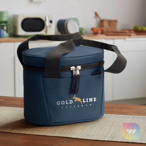 Handy 3.5L lunch cooler bag made from robust 600D polyester with woven carry handles. The zippered main compartment is insulated with PE foam encased in a water-resistant PEVA inner liner. Caspian features woven carry handles and a slip pocket.