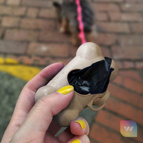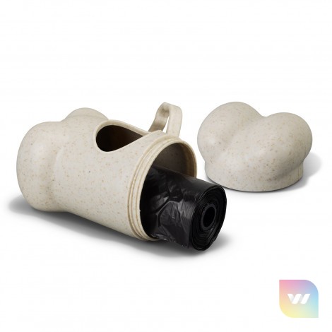 Handy pet waste bag dispenser made from a blend of wheat straw fibre and polypropylene with a useful clip for attaching to bags, collars and leads. The dispenser features a screw on lid and includes 15 waste bags made from polyethylene.