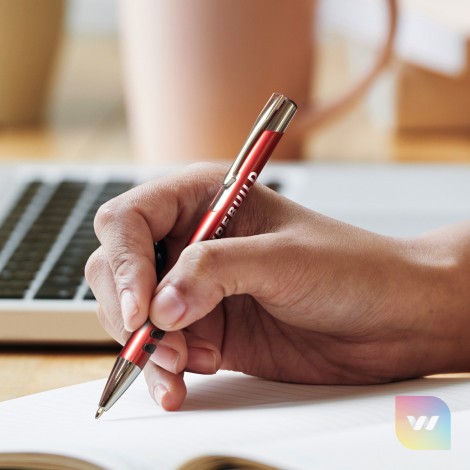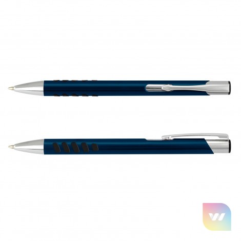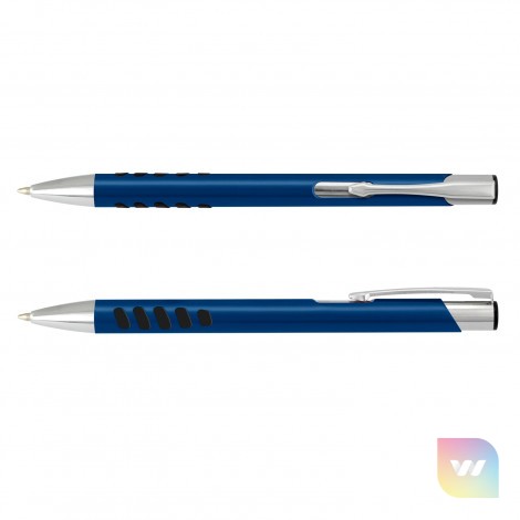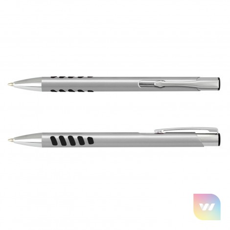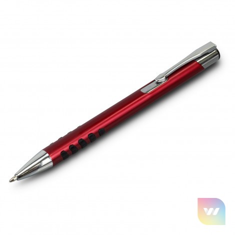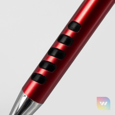 Retractable aluminium ballpoint pen with a matte anodised coloured barrel, shiny chrome accents and a black silicone grip with matching end cap. It has a large volume refill with 1200 metres of black German manufactured Dokumental ink. Panama can be presented in an optional pen sleeve.