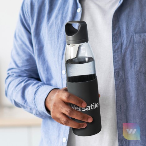 Streamlined 650ml drink bottle made from lightweight borosilicate glass, which is exceptionally strong and shatter-resistant. Allure features a non-slip silicone sleeve, a secure screw-on lid with a built-in carry handle, and is presented in a natural gift box.
