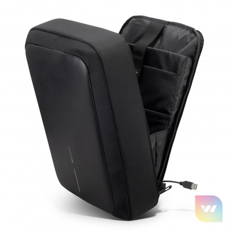 Exceptional 10L anti-theft backpack from XD that doubles as a secure briefcase, keeping belongings safe on daily commutes. Made from high-quality cut-resistant 900D polyester with PU coating and a reflective print, Bizz has two compartments padded with anti-shock foam that will fit a laptop up to 15.6" and a tablet up to 10". Easily attach a power bank to the built-in USB charging port to charge devices on the go. A built-in metal frame helps to protect items and ensure the bag retains its shape on any adventure. With a comfortable carry handle and padded shoulder straps that can be removed and stowed away, this versatile bag features an integrated zinc alloy lock, making it the perfect accessory for anyone on the go.