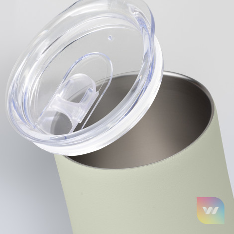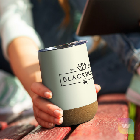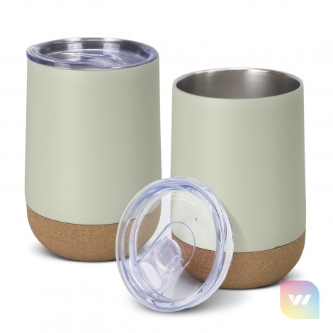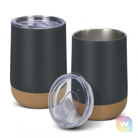 Chic 300ml double wall, vacuum insulated stainless steel cup with a tapered design and a non-slip natural cork base. Vixen features a tough powder coating and a secure push on lid with a sliding closure. The cup is BPA-free, laser engraves to a stainless steel finish and is presented in a natural gift box.