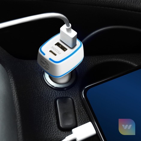 Charge multiple devices simultaneously with this fast car charger, perfect for long commutes and road trips. The charger features three charging ports two USB-A ports and a Type-C port.