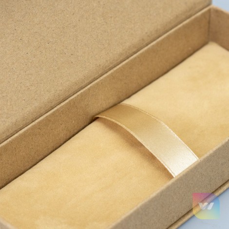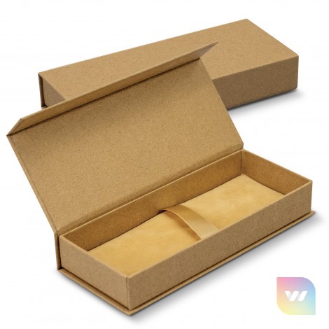 Stylish natural pen presentation box which will hold one or two pens. It has a padded velvet base, a magnetic closure and a ribbon with hidden elastic loops to secure the pens.