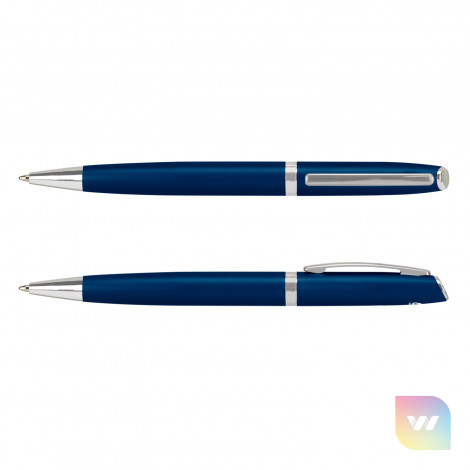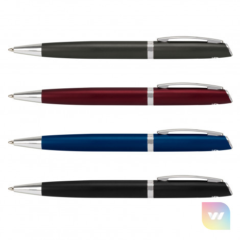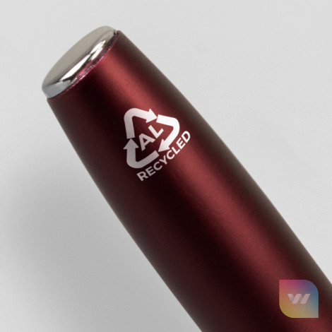 Twist-action ballpoint pen with a recycled aluminium barrel featuring a matte lacquered finish and shiny chrome trim. It has a blue refill with 1200 metres of German manufactured Dokumental ink. A recycled symbol is engraved at the top of the barrel and can be presented in an optional pen sleeve.