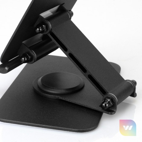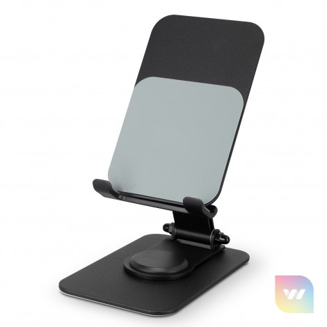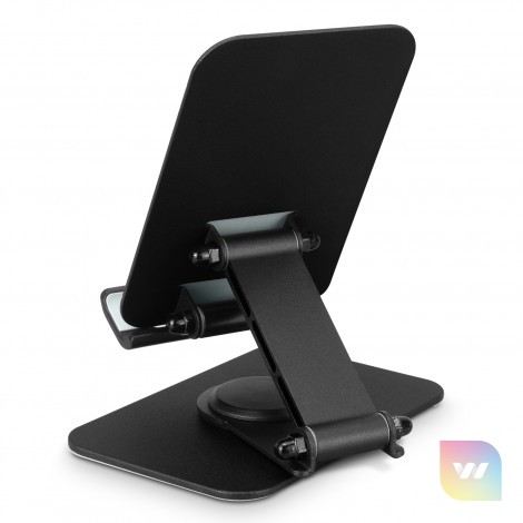 This stylish and functional phone stand will improve any hands-free phone and tablet experience. Made from robust aluminium alloy and steel with a tough powder coated finish, this phone and tablet stand's thin, compact design means it folds smoothly down for easy transportation, perfect for work, entertainment or travel. The 360-degree rotating base swivel and 120-degree viewing angle adjustment allow you to find the perfect angle, and non-slip silicone pads on the cradle and base ensure a secure grip, keeping your device in place.