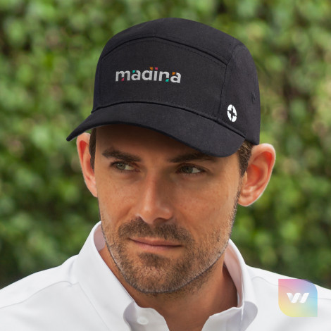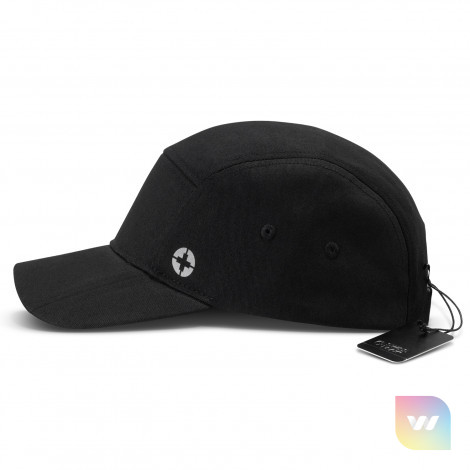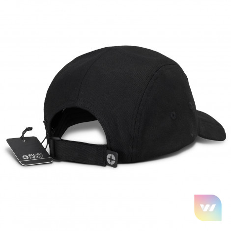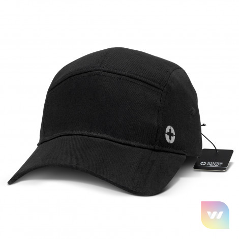 Swiss Peak's deluxe five panel hat is made of a soft blend of 98% cotton and 2% spandex. The hat features an adjustable Velcro strap with a silicone pull tab, grey accents, and custom Swiss Peak bias tape interior. Available in one size to fit most people, the hat sports a reflective Swiss Peak logo and hang tag.