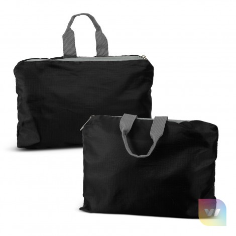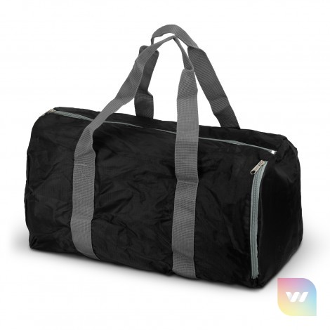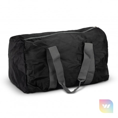 Handy 28L foldaway duffle bag made from 210D polyester with strong woven carry handles. The lightweight duffle conveniently folds away into a pouch for easy storage, making it ideal for travel. When the bag is in use, the pouch discreetly zips away into the end of the duffle.