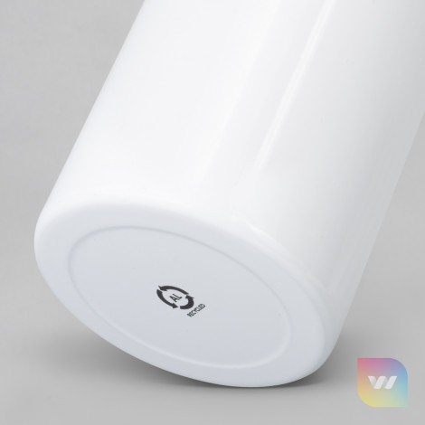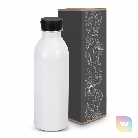 Compact 500ml bottle made from recycled aluminium with a painted finish and a secure screw-on lid made from recycled polypropylene. All recycled materials are GRS-certified, and the bottle features the recycled symbol printed on the base. Optional gift box and gift box sleeve available at an additional cost.