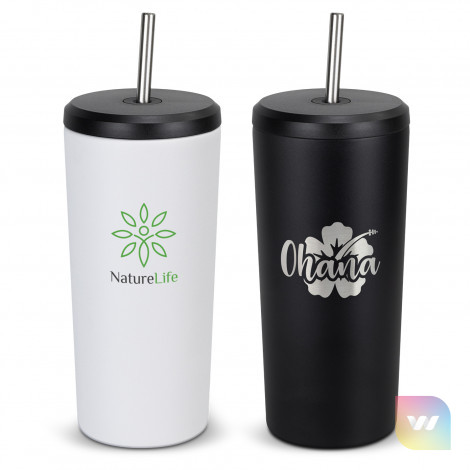 Chic 650ml tumbler, with double wall, vacuum insulation to keep smoothies and juices cool and fresh. Made from stainless steel with a durable powder-coated finish, the tumbler has a stainless steel straw and a secure screw-on lid with a silicone seal to prevent spills and leaks. Alco is presented in natural gift box with product branding.