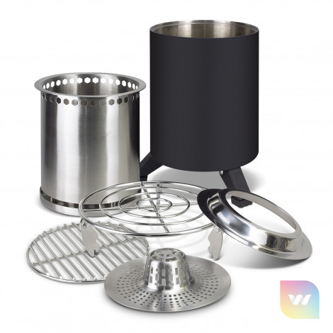 Satisfy your appetite for adventure with the Frontier Camp Fire Cooker. Made from stainless steel with a tough powder coating, this versatile cooker is ideal for camping, or using as a small cooker or fire in the garden. The cooker is fuelled by wood pellets, which are placed into the inner chamber. Once the fuel is alight, put the BBQ grill on top of the cooker and start grilling. The cooker is presented in natural kraft packaging with Frontier branding and includes a small bag of wood pellets and instructions for use.