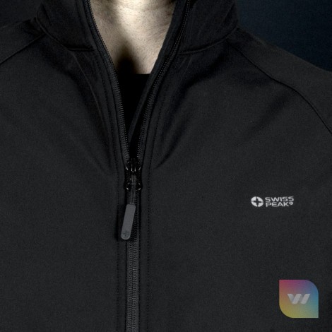 Crafted from 320gsm polyester/spandex with a water-resistant rating of 5000, the urban-style softshell jacket is both stylish and practical, offering a cozy warm fleece lining for comfort and protection. It features two zippered side pockets and Velcro-fastened cuffs. The main zipper, a reliable YKK zipper, extends up to the neck, providing additional protection from the cold. Thoughtfully designed, it includes comfortable zip pullers embossed with the Swiss Peak logo and two large inner pockets to safeguard personal items.