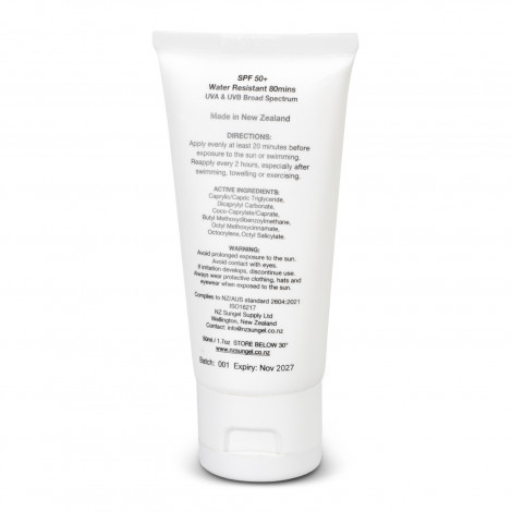 Gel-based SPF50+ sunscreen with excellent broad spectrum protection, presented in a 50ml tube with a secure flip cap. Certified for use in New Zealand, this high-performance sun gel is water-resistant for up to 80 minutes, and contains no water, zinc, whiteners, perfumes or colourants. Full ingredient and application information is available on the back of the tube. The gel is manufactured in New Zealand and has a shelf life of three years from the date of manufacture.