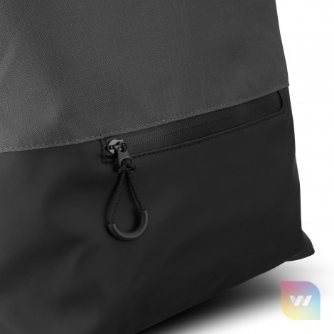 Versatile and robust 19L roll-top commuter backpack made from 600D ripstop polyester with 210D lining. The roll-top closure has secure squeeze-release buckles and snap buttons to help close the spacious main compartment. Other features include a PU panelled base for added durability, a padded compartment to fit a 15″ laptop, a comfortable padded back and with adjustable shoulder straps, a zippered front pocket and a discreet zippered side pocket.