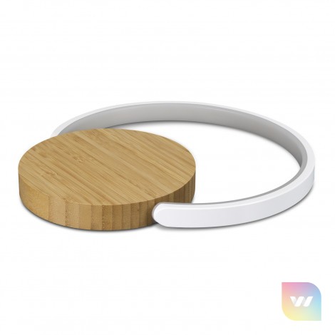 This modern, minimally designed bamboo nightlight makes the perfect bedside companion with its wireless charging capabilities. It features touch controls to switch between five brightness settings. The large flat charging surface is perfect for brand impact. Due to the natural grain of bamboo, variations in colour, grain, and pattern are unavoidable. The folding light makes it easy to transport, and it comes packaged in a natural kraft gift box.