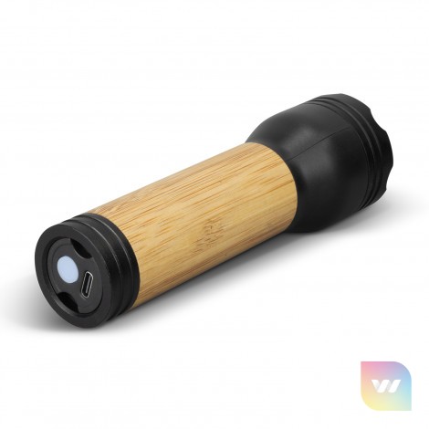 This bamboo and black torch delivers an impressive 3W, 110 lumen of light, making it the prefect torch in times of need. It features three light modes and provides up to 4.5 hours of continuous use on a single charge. The comfortable bamboo handle is warm to the touch, offering a feel-good factor and an ideal canvas for branding. The torch recharges in just 2.5 hours, with a type-c charging cable included. This product is presented in an individual natural gift box.