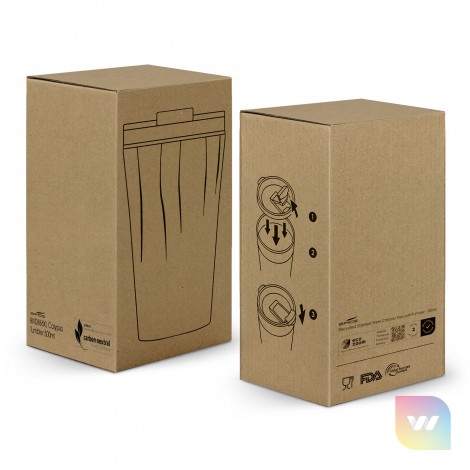 SPICE strive to create extraordinary products that have a positive impact on the planet. Their Calypso range is no different - this 500ml Vacuum Tumbler is made from recycled 304 stainless steel and has a leak-proof lid. This product is 100% carbon neutral to delivery and is presented in a natural gift box with black print, featuring the SPICE logo on the back of the box.