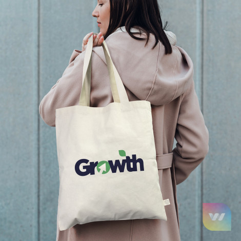 This functional and environmentally conscious 1L tote bag is crafted from 100% recycled, unbleached natural cotton. The handles are designed at the ideal length for carrying in hand or over the shoulder. Make a bold statement for your brand with the spacious print area.