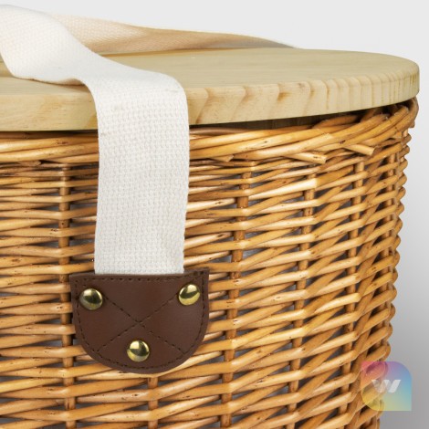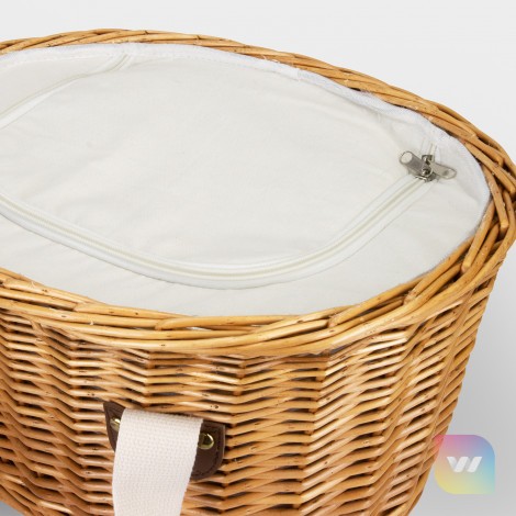 This classically designed, 31L willow and wood cooler basket is the perfect addition to any summer picnic. With its deep cavity and twin zip offering a wide opening, it provides ample space and ease of use for all your picnic essentials. The sturdy wooden lid also doubles as a convenient serving board, adding an extra touch of class and practicality. It also features two carry handles with an ergonomic dome-fastened grip, and an easy-wipe lining for effortless cleaning. Presented with a Keepsake hangtag, it's a must-have for any outdoor gathering.