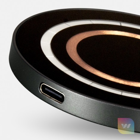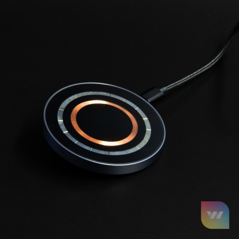 The 15W Arc Magnetic Single Wireless Charger blends innovation with elegance, delivering quality performance within a premium design. Designed to seamlessly integrate into everyday life, the charger comes with a metal ring for non MagSafe phones, ensuring compatibility with any device. Additional features include red and blue LED charging indicator lights, and discreet rubber feet for stability. The sleek black glass finish, refined copper accents, and quality components make this charger a standout accessory. Presented in a beautifully crafted INGENIO gift box, it is ideal for corporate gifting, and the ultimate brand statement. INGENIO - Designed to lead, built to last, made to inspire.
