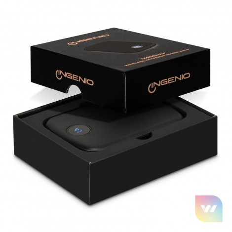 The MagSnap Wireless Charging Bank blends elegance with performance, offering stylish and convenient power on the go. Designed to seamlessly integrate into everyday life it has the capability to charge up to two devices simultaneously and comes with a metal ring for non MagSafe phones. This ensures compatibility with any device. Additional features include a silicone magnetic charging surface that securely locks your phone in place, and a power button that doubles as a power level indicator. The sleek black glass finish, refined copper accents, and quality components make this compact and lightweight charging bank a standout accessory. Presented in a beautifully crafted INGENIO gift box, it is ideal for corporate gifting, and the ultimate brand statement. INGENIO - Designed to lead, built to last, made to inspire.