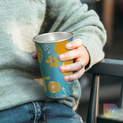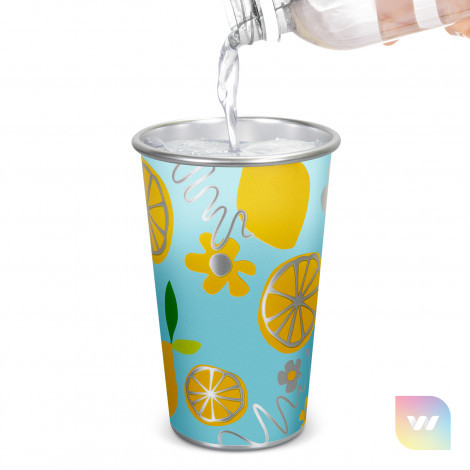 Introducing a fantastic novelty temperature-sensitive cup, crafted from recycled aluminium. This cup uses a special heat transfer process to produce a unique colour-changing effect when filled with an ice-cold beverage. Designed with a comfortable size and shape, it holds up to 400ml of liquid, making it perfect for a refreshing drink. Note that this product is not dishwasher safe hand washing is recommended for optimal care. The lead time on this product is 9-10 weeks.
