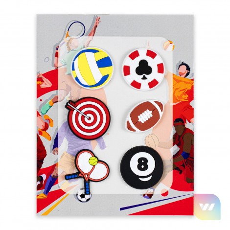 Step out in style with a pack of six custom PVC shoe charms. Each charm can be a different design up to 3cm in size, and includes up to six colours. Made from flexible, PVC rubber, they add instant personality to footwear. A production lead time of 25 working days applies to this product.