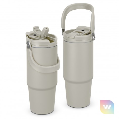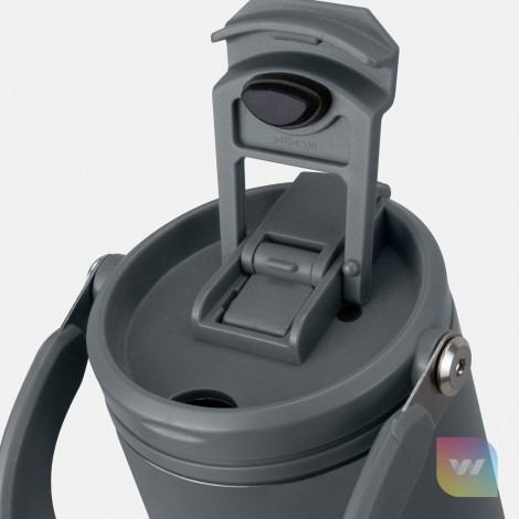 The Sentry Vacuum Mug is an extra-large 900ml cup designed for ultimate convenience and durability. Made from stainless steel with a tough powder coated finish and double wall vacuum insulation, it will keep your drinks hot or cold for longer wherever life takes you. The versatile lid offers two drinking options a flip valve with a straw, and a flip closure. The straw can even be removed if you are drinking hot liquids. A large ergonomic carry handle makes it perfect for adventures. This product is presented in a natural kraft gift box.