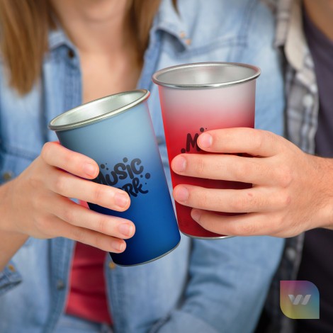 The Chameleon Colour Changing Cup turns every sip into an experience. Made from recycled aluminium, this 450ml cup reacts to ice cold drinks, changing colour before your eyes. Perfect for festivals, events, and brand activations, it is lightweight, reusable and a fun, way to make your brand the centre of attention.