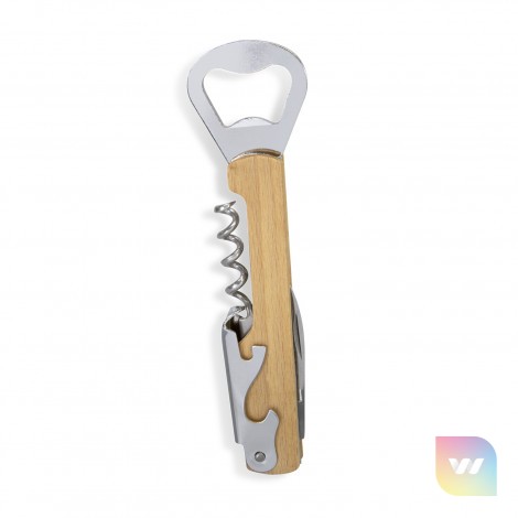 Crafted from stainless steel and beech wood, this wine waiter's knife combines elegance with practicality. Its multi-function design features a built-in bottle opener, corkscrew, and foil cutter, making it an essential tool for wine lovers. Presented in a natural kraft gift box.