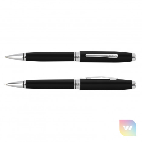 Since 1846, Cross has been redefining the art of writing by creating distinguished, expertly crafted writing tools. The Cross Coventry ballpoint pen blends timeless design with exceptional craftsmanship. Featuring the iconic Cross design, signature conical top, and cap-over-barrel design, this pen boasts a sleek gloss black lacquer finish with polished chrome appointments. The swivel-action propel/repel mechanism and specially formulated ink provide a smooth, flawless writing experience and a Lifetime Mechanical Warranty gives you peace of mind. The Cross name engraved on the pen clip adds a touch of distinction. Presented in a Cross branded gift box with a cardboard sleeve, this pen is the perfect gift for anyone who appreciates the art of fine writing. Additional colour options are available - please contact our customer service team for stock availability and pricing.