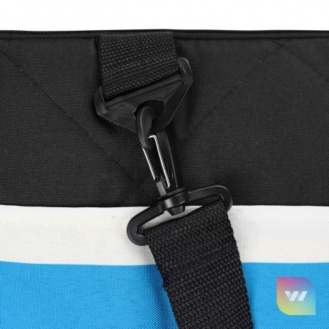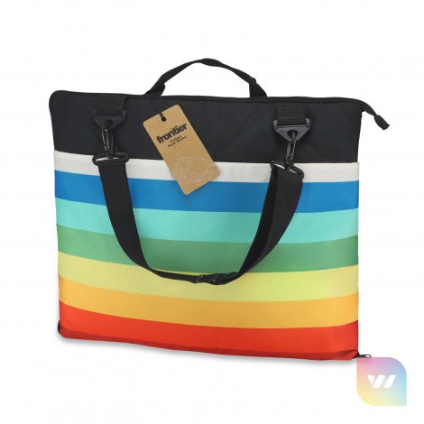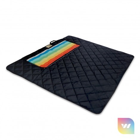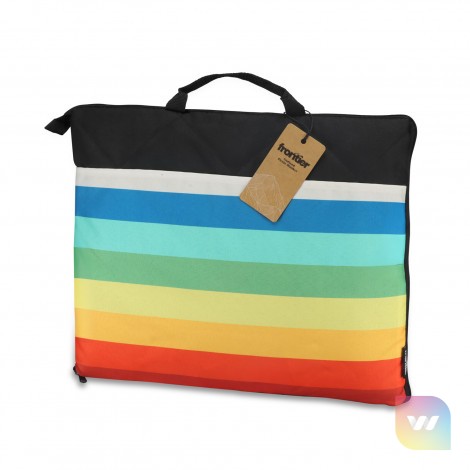 Bright, versatile, and built for the outdoors, the Frontier Outland Picnic Blanket is the perfect companion for picnics, camping, and weekends away. Made from durable, 600D polyester with a striped design, it features a water-resistant polyester taffeta backing. It easily folds into a handy pillow with a secure zip closure, with large front and back slip pockets for storage and brand visibility. Finished with woven carry handles and an adjustable, removable shoulder strap making it easy to transport. Presented with a Frontier branded hangtag.