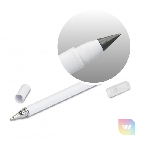 The Switch Dual-Tip Pen offers the best of both worlds with an inkless metal alloy tip on one end and a smooth ballpoint pen on the other. The inkless tip deposits small amounts of metal onto the page, creating pencil-like marks without the need for sharpening or refills, while the ballpoint pen features a 1mm nib with black Dokumental ink and a 1000m writing distance. Available in matte black or gloss white, each pen includes removable plastic caps for both ends and can be presented in an optional pen sleeve at an additional cost.