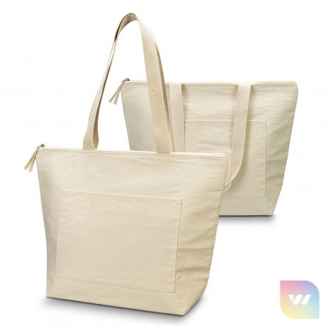 This 22.5L cooler tote is made from durable 270gsm natural cotton and features PE insulation with an aluminium foil lining to keep food and drinks cool while on the go. Designed for practicality, it features woven handles, a zippered top closure, and a convenient side slip pocket for extra storage. Perfect for picnics, market trips, or daily errands.
