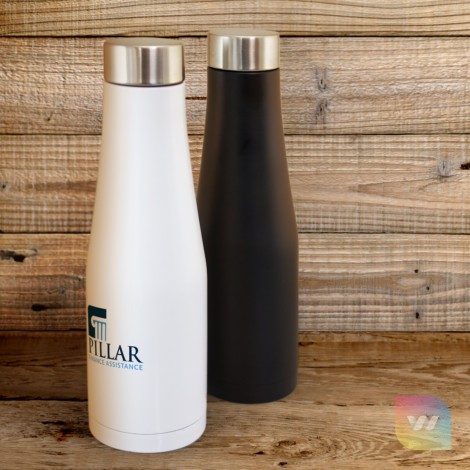Compact 500ml, double wall vacuum insulated stainless steel drink bottle with a stunning streamlined design. It has a secure screw on stainless steel lid and will keep drinks cold for 24 hours and hot for up to 12 hours. Velar is BPA free and laser engraves to a shiny steel finish. It is presented in a black gift box. This product is not dishwasher safe and handwashing is recommended.