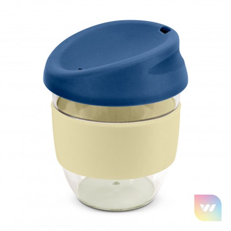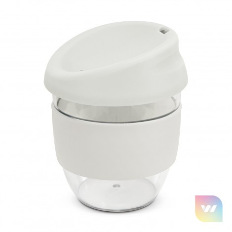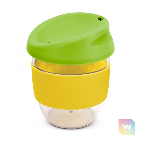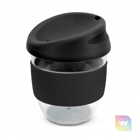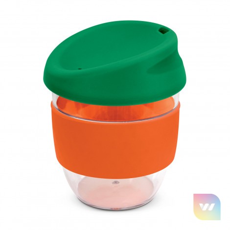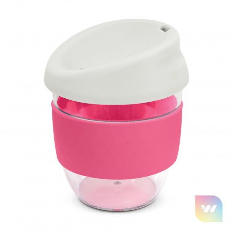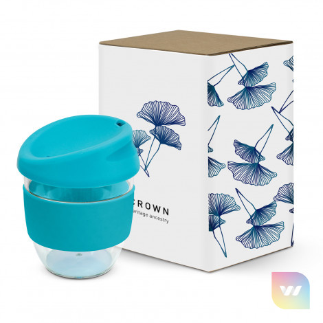 Sophisticated 230ml coffee cup with a secure push on silicone lid and a wide heat-resistant silicone band. It is manufactured from crystal clear Tritan which is a premium material that is BPA-free, shatterproof and odour-resistant. The lid and band can be mixed and matched in any colour combination from the standard colours at no extra cost. Up to five different colour combinations are included in the price and more are available for an additional charge. Nova Cup can be presented in an optional natural gift box. This product is not dishwasher safe and handwashing is recommended. Nova Cup is protected under New Zealand Design Registration No. 426637 and Australian Design Registration No. 201916426.